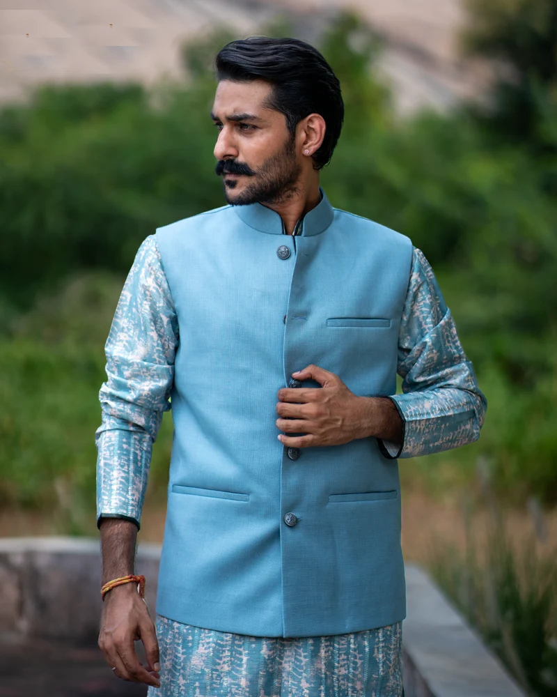 Victorian Azure Charm Bundi (Nehru Jacket)