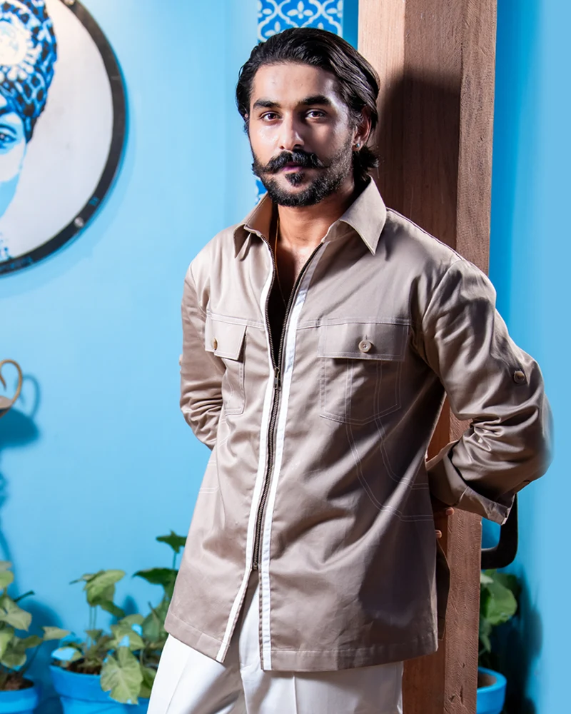 Zippy Zen in khaki grace with diamond patch pockets with flap , with contempaorary thread detailing and a timeless khaki hue. Its a style statement like no other.
